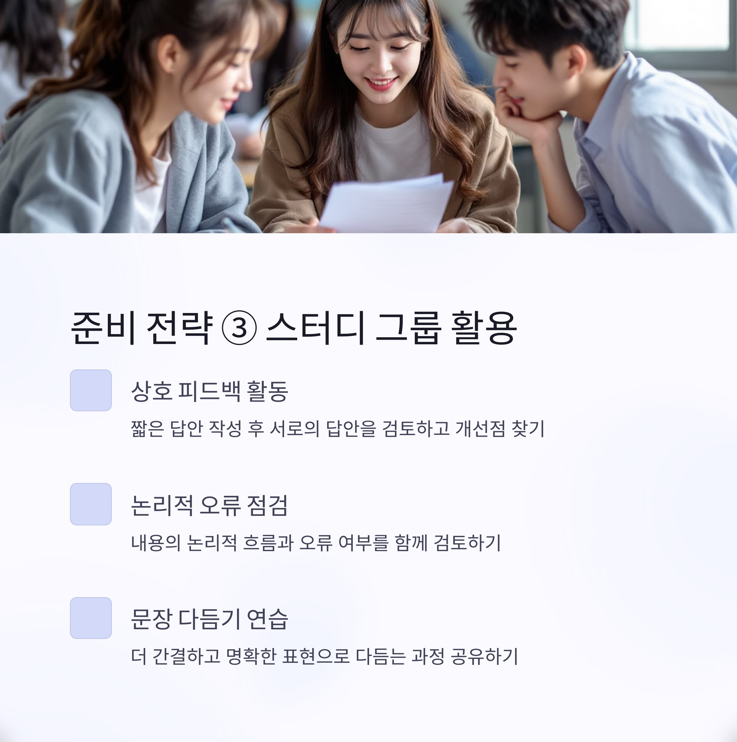 🎓 전략 팁: 대학별 기출문제를 반드시 확인하고, ‘자료 분석 → 핵심 정리 → 명료한 서술’의 세 단계를 반복 연습하세요.
