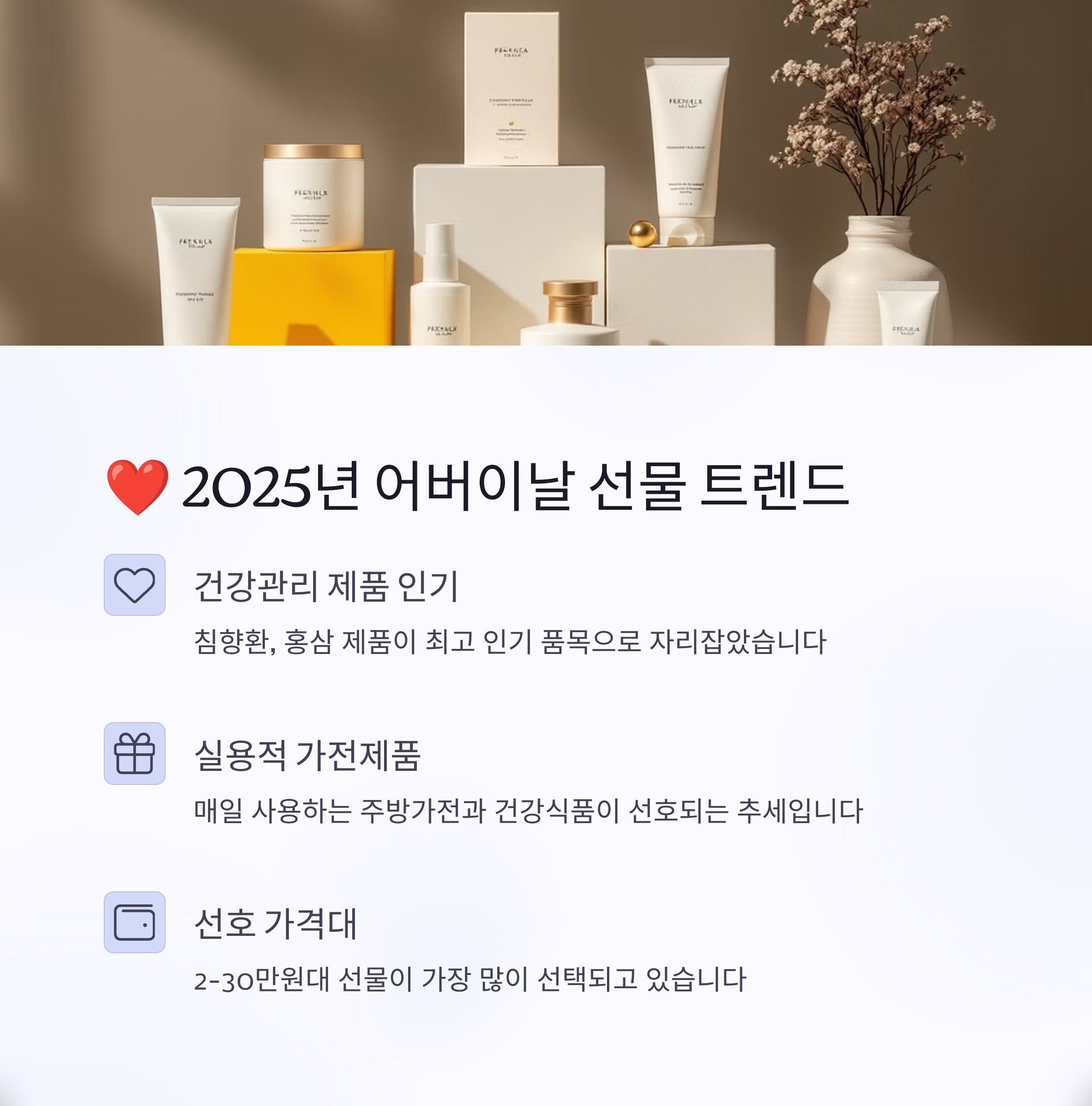 올해는 단순한 꽃다발을 넘어서 실용성과 감동을 모두 챙길 수 있는 선물 아이템을 준비해 보세요. 아래는 카테고리별로 정리한 2025년 어버이날 추천 선물 BEST 10입니다. 부모님의 건강, 취향, 라이프스타일에 따라 고르기 쉽게 안내해 드립니다. 😊