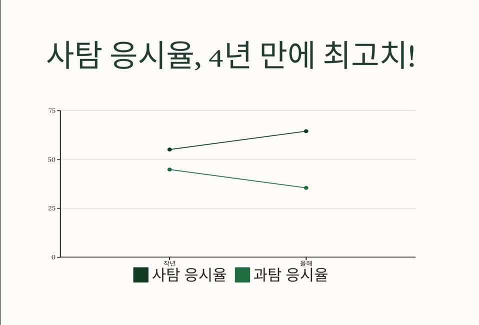 - 📌 사탐 응시율: 64.6% (작년 대비 +9.5%p 상승)