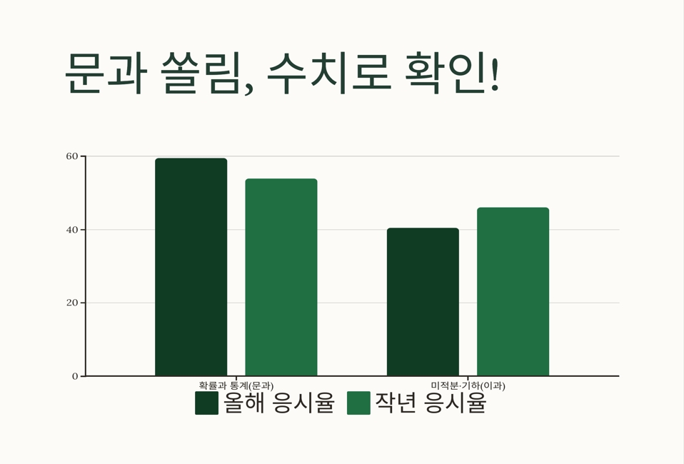 - 🧮 확률과 통계 응시율(문과): 59.5% (작년 53.9% → +5.6%p 상승)