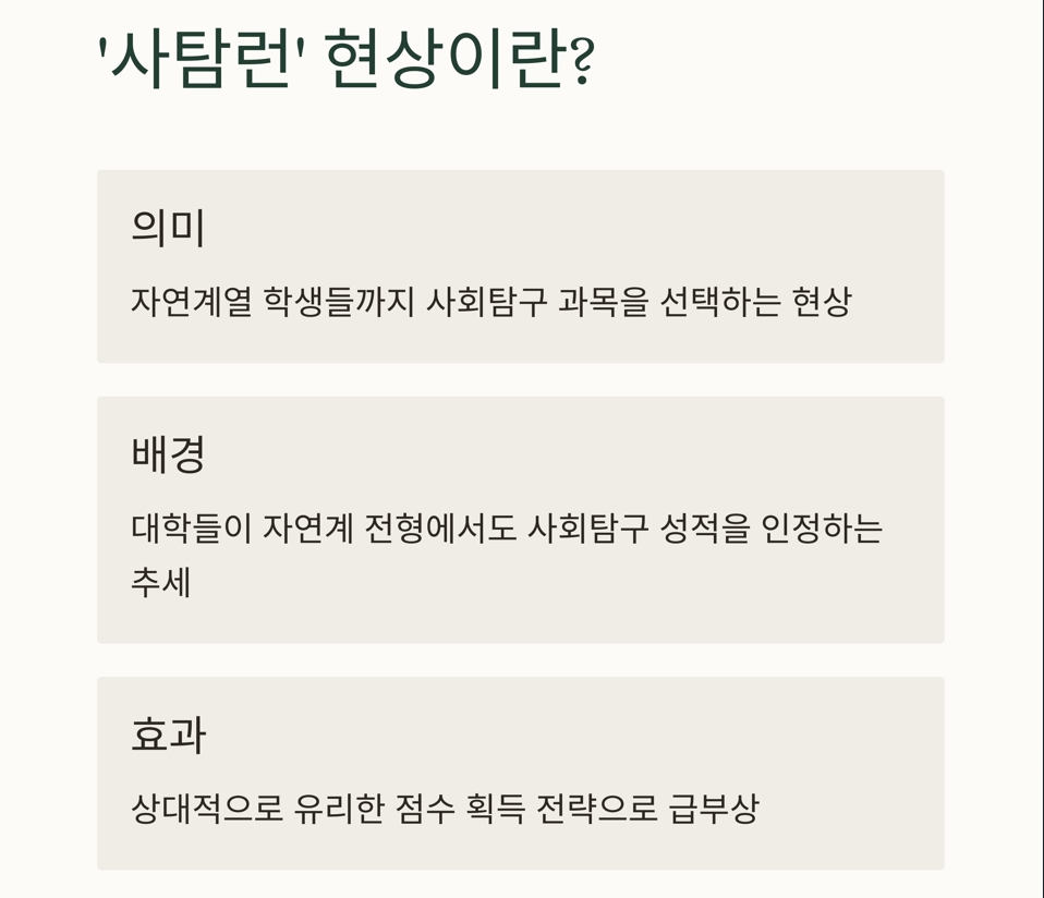 최근 입시 전략에 큰 영향을 주고 있는 '사탐런' 현상,