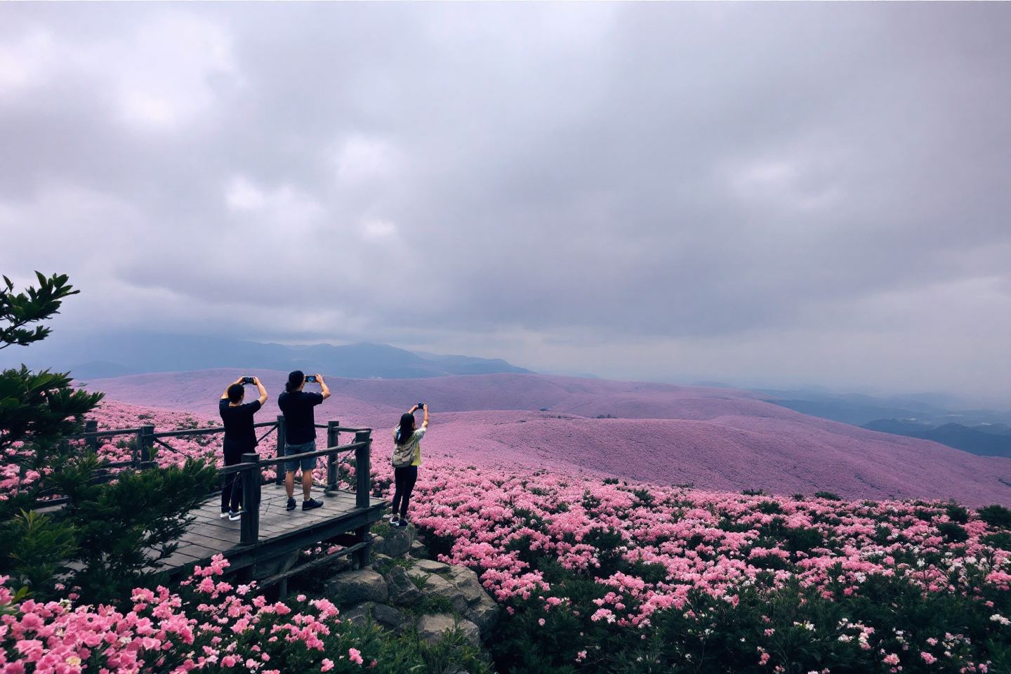 - 철쭉 군락지 메인 광장: 분홍빛 카펫!
