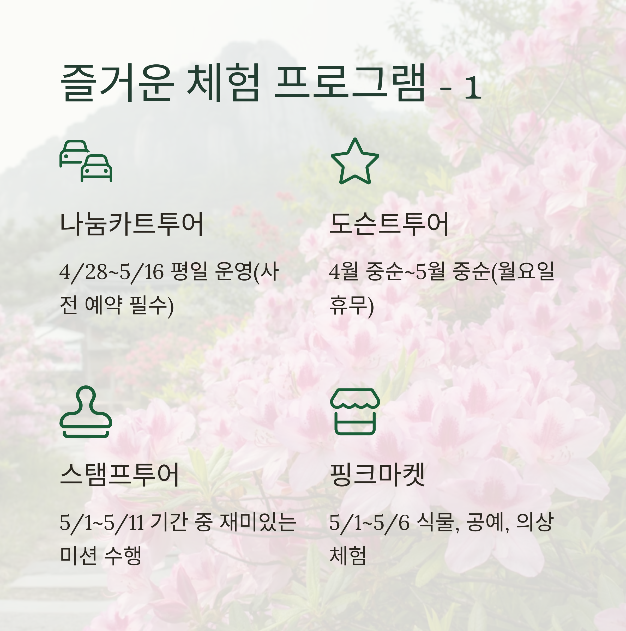 → (교통약자 1명 + 보호자 1명) 전동카트로 편안하게 철쭉 군락 관람