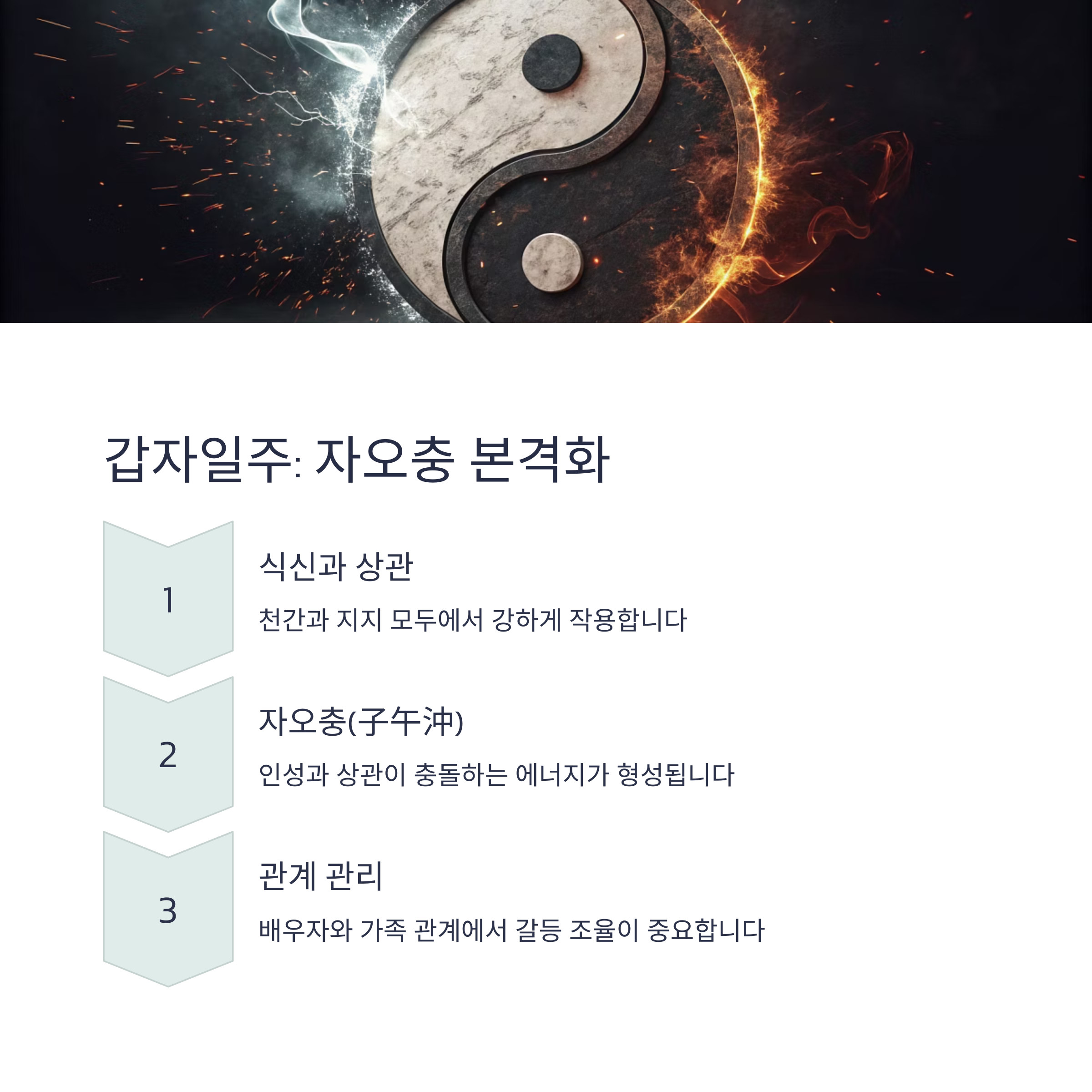 갑자일주 – 자오충, 감정 기복, 활동성 ↑