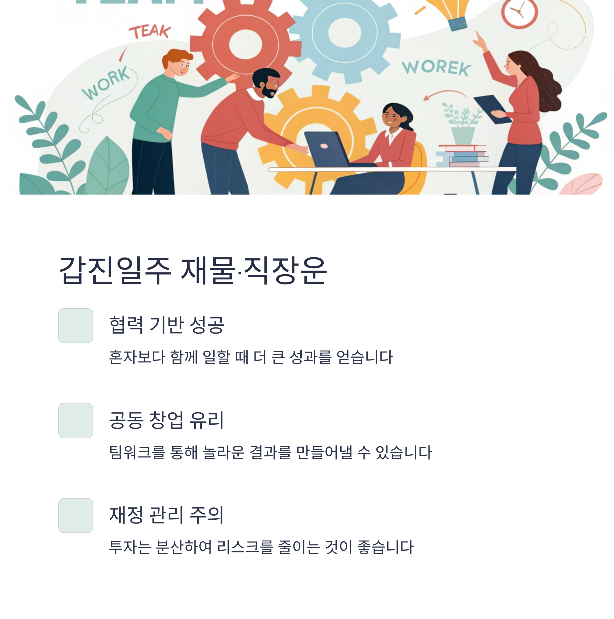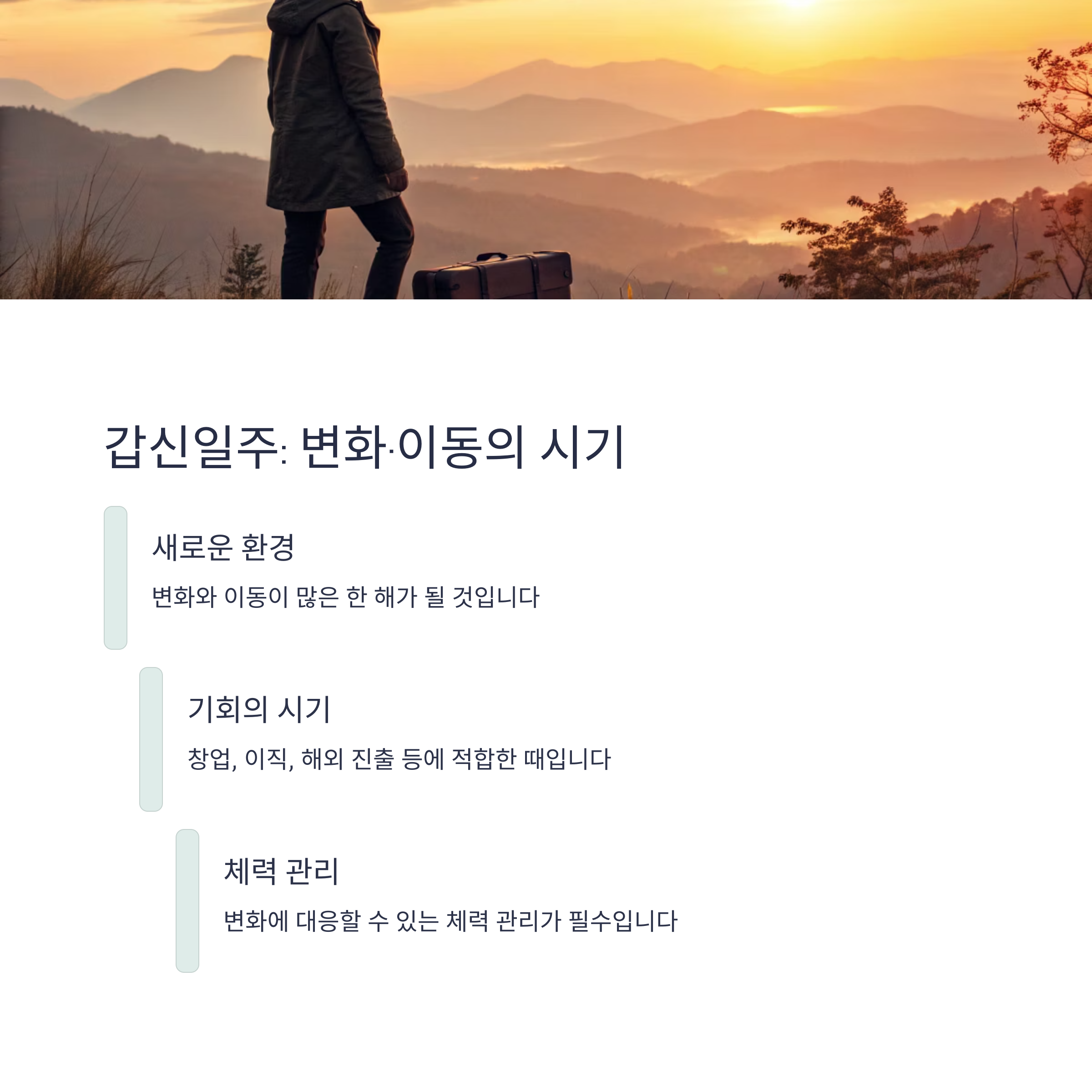 덧붙여 갑일주의 일지별 – 갑자, 갑인, 갑진, 갑오, 갑신, 갑술 운세도 각각 심층 분석하여 안내드립니다.