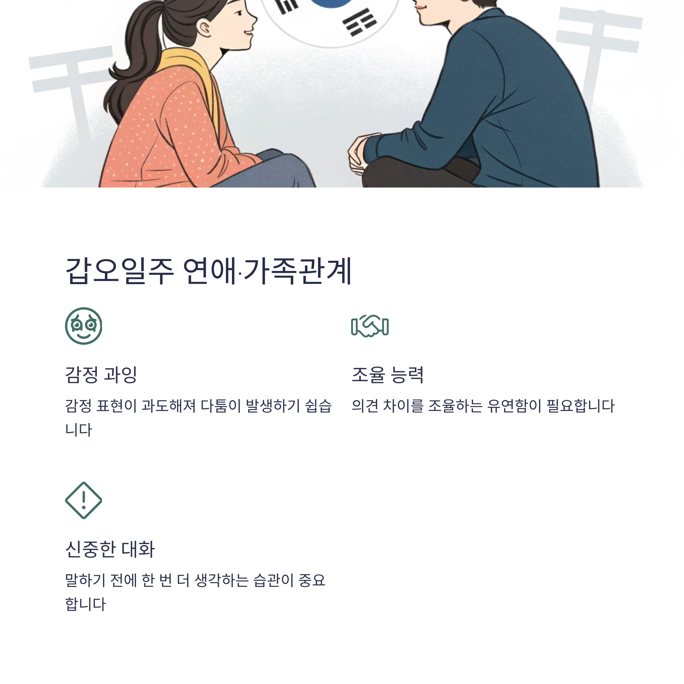 - 정제와 상관이 함께 오므로 기본적 연애/부부관계는 안정적입니다