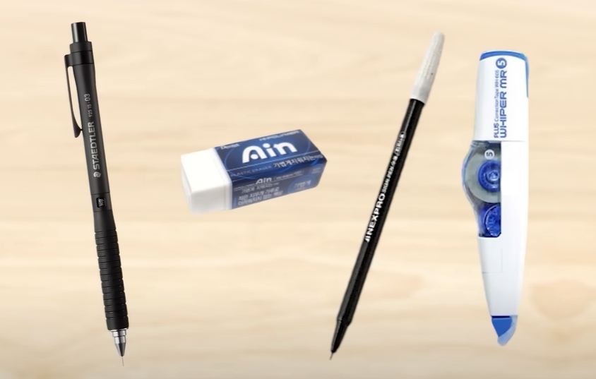 • 컴퓨터용 사인펜, 수정 테이프, 연필, 지우개